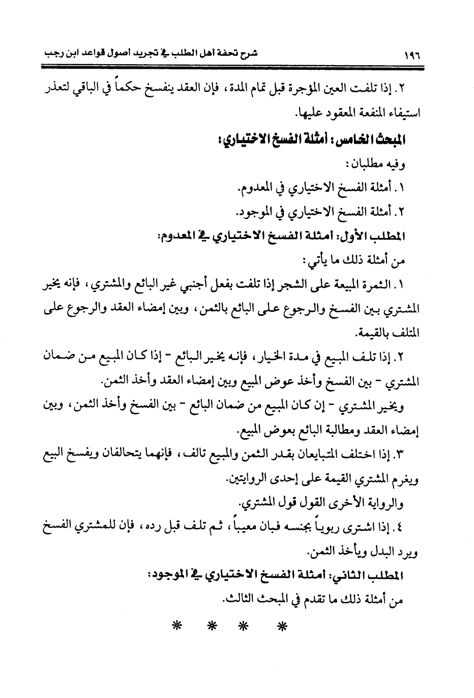 المطلب الثاني: أمثلة الفسخ الاختياري في الموجود: