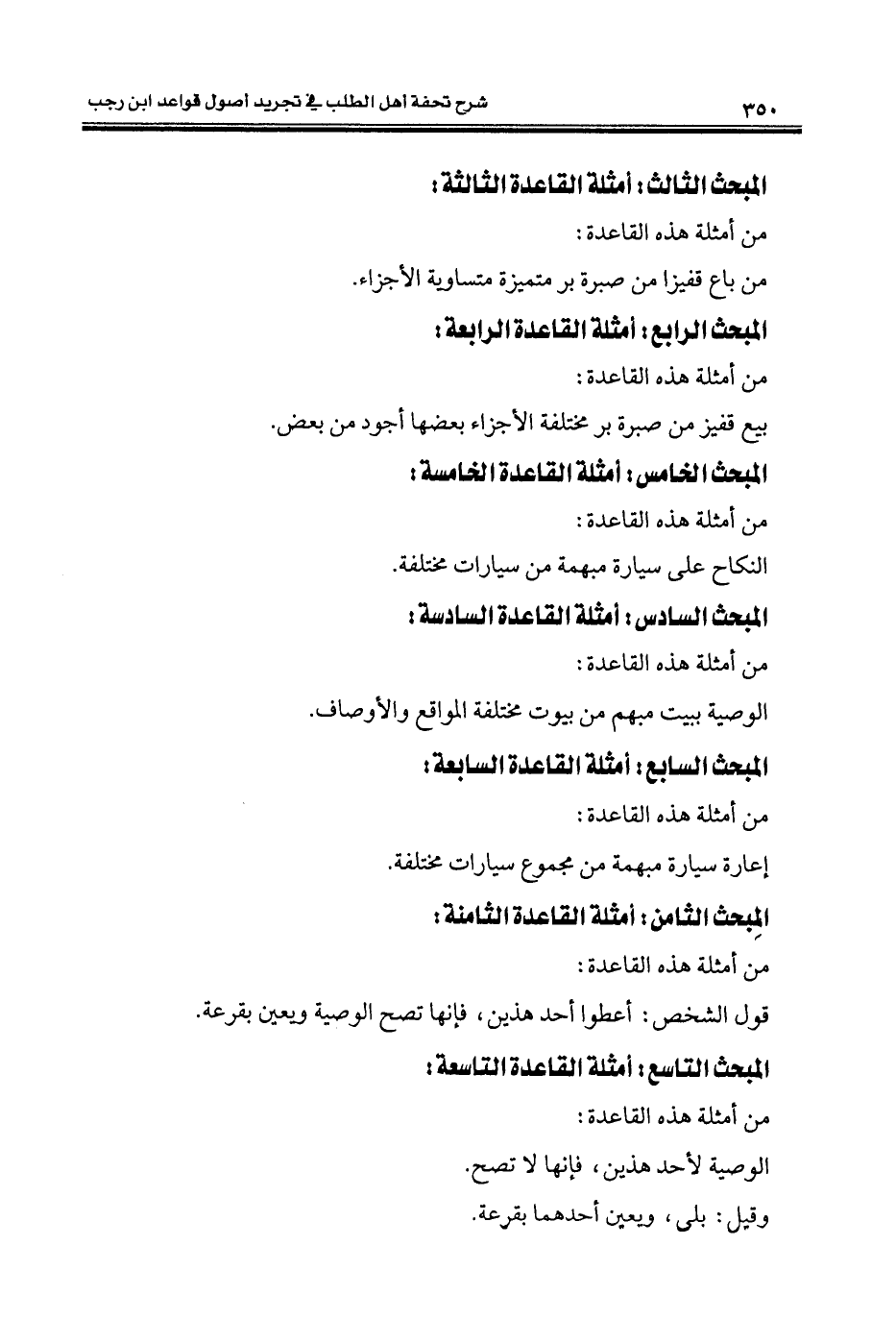 المبحث التاسع: أمثلة القاعدة التاسعة: