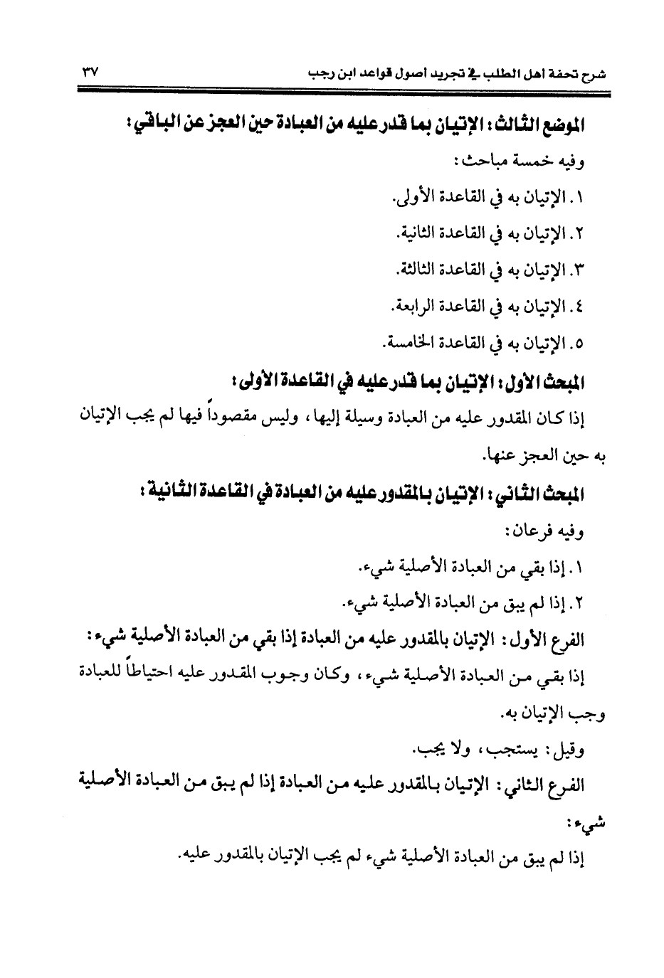 كتاب شرح تحفة أهل الطلب في تجريد أصول قواعد ابن رجب