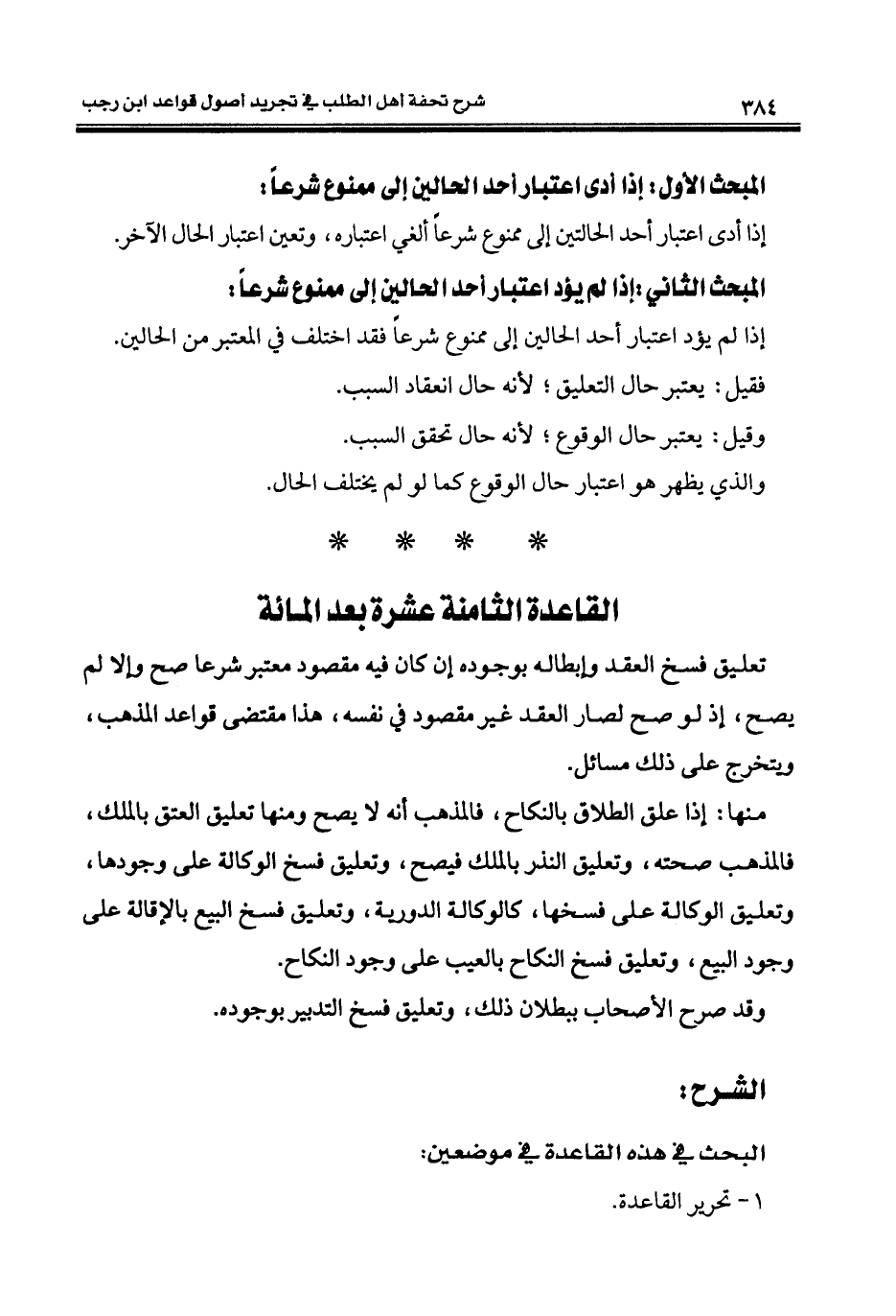 كتاب شرح تحفة أهل الطلب في تجريد أصول قواعد ابن رجب