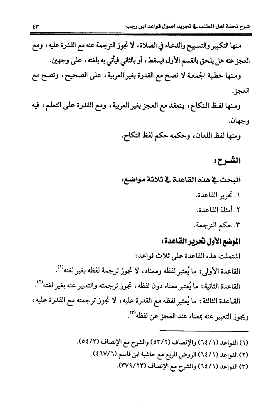 كتاب شرح تحفة أهل الطلب في تجريد أصول قواعد ابن رجب