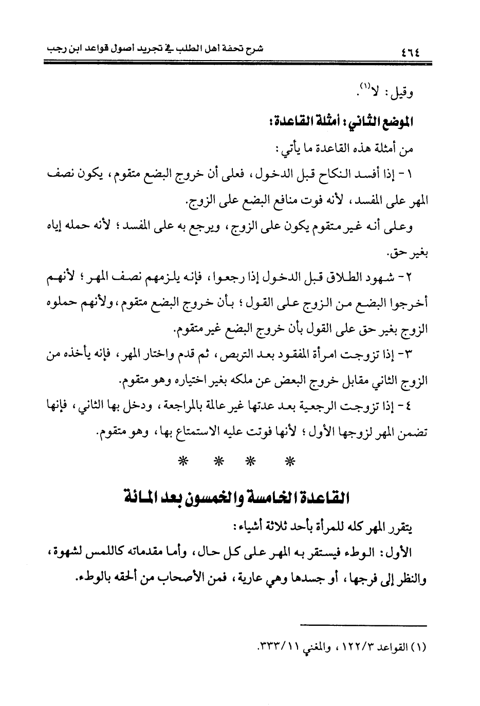 (¬1) القواعد 2/ 123، والمغني 11/ 333.