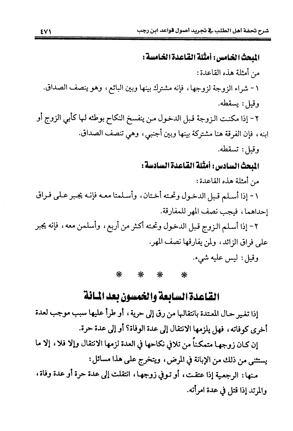 المبحث الخامس: أمثلة القاعدة الخامسة: