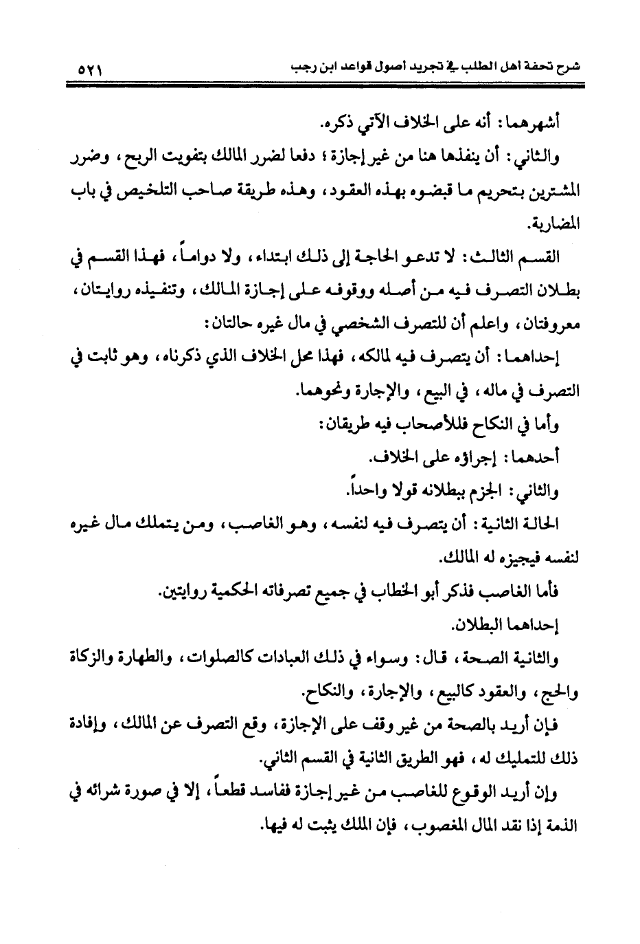كتاب شرح تحفة أهل الطلب في تجريد أصول قواعد ابن رجب