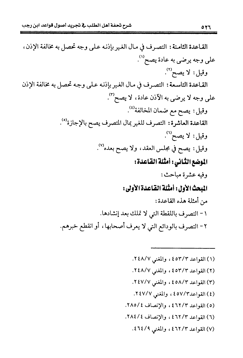 (¬7) القواعد 3/ 462، والمغني 9/ 464.