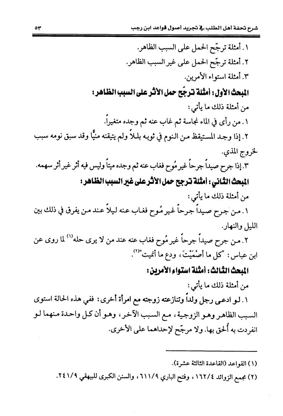 1 - أمثلة ترجّح الحمل على السبب الظاهر.