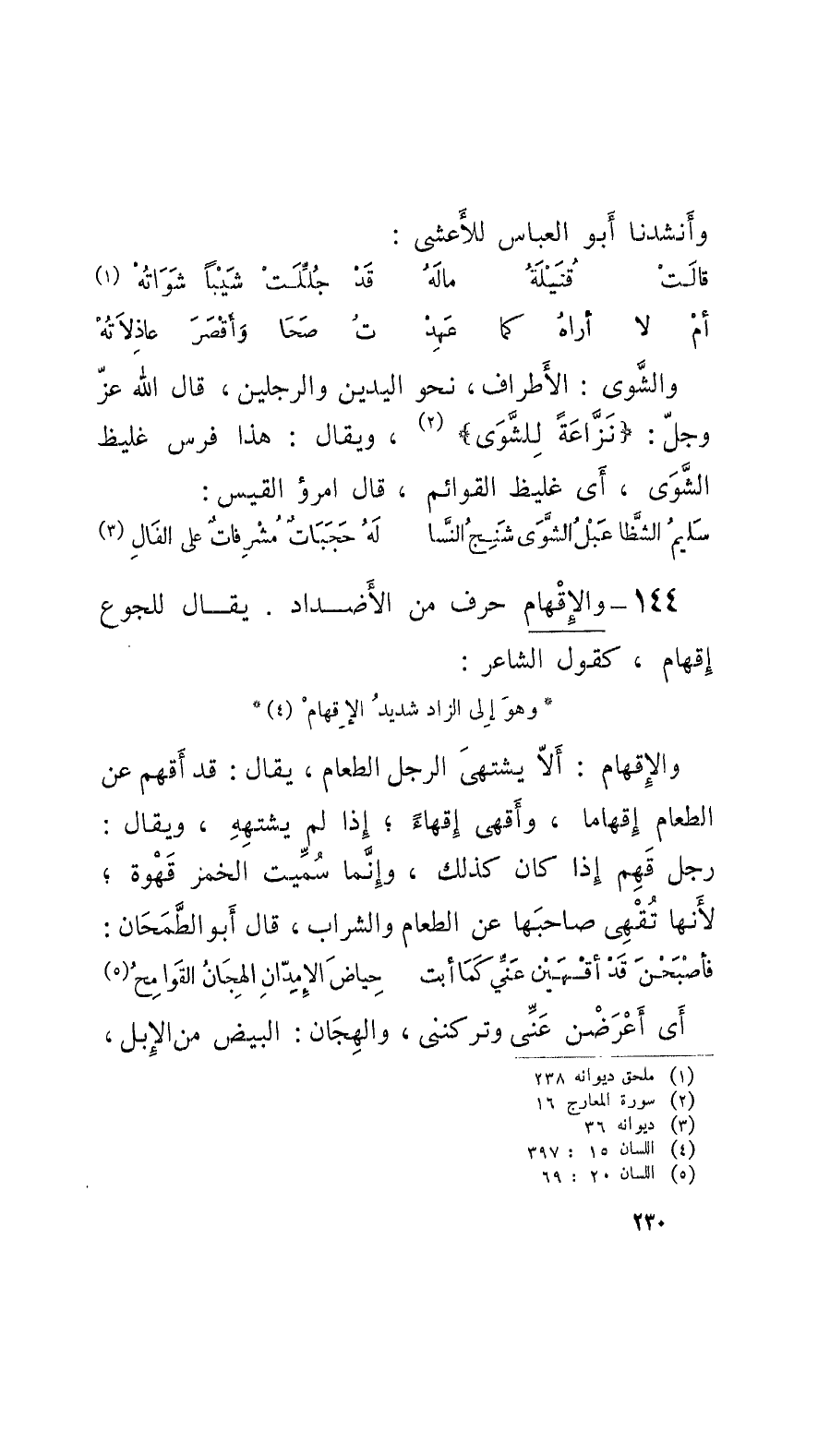 144 - والإِقْهام حرف من الأَضْداد. يقال للجوع إِقْهام، كقول الشَّاعِر: