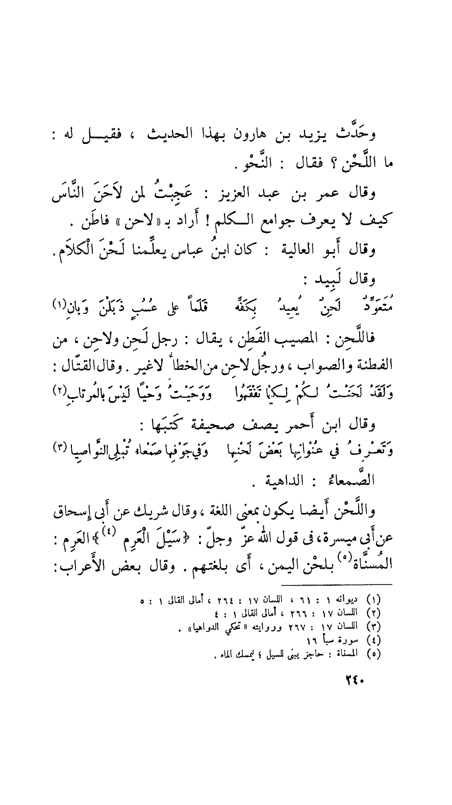 وقالَ أَبو العالية: كان ابن عباس يعلِّمنا لَحْنَ الكلام. وقالَ لَبيد: