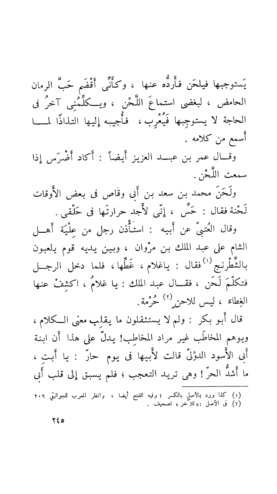 يَستوجبها فيلحَن فأَردُّه عنها، وكأني أَقْضَم حَبَّ الرمان الحامض، لبغضي استماعَ اللَّحْن، ويكلِّمُني آخرُ في الحاجة لا يستوجِبها فَيُعْرِب، فأُجيبه إليها التذاذاً لما أَسمع من كلامه.