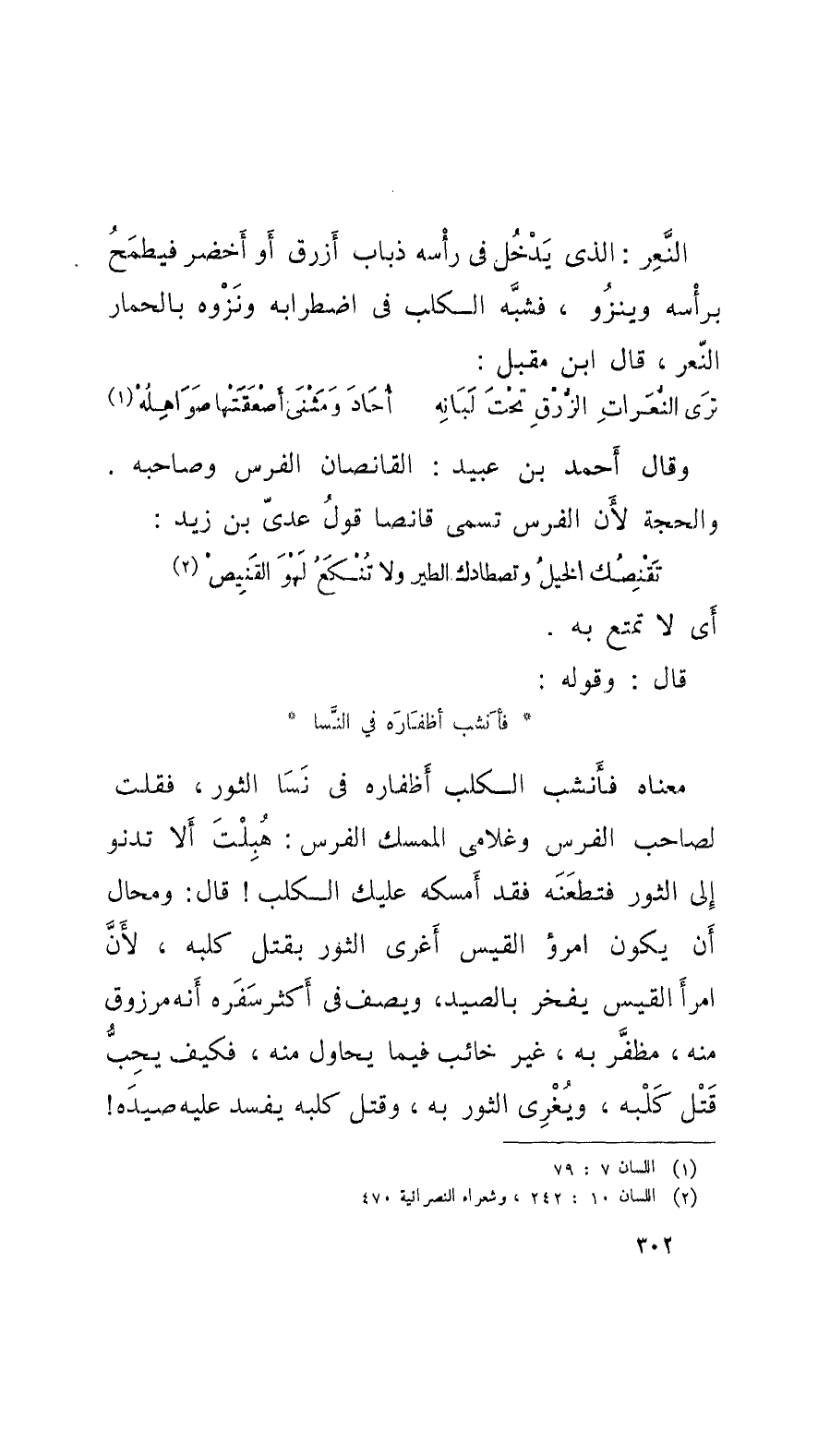 وقالَ أَحمد بن عُبيد: القانصان الفرس وصاحبه. والحجة لأَنَّ الفرس تسمى قانصاً
