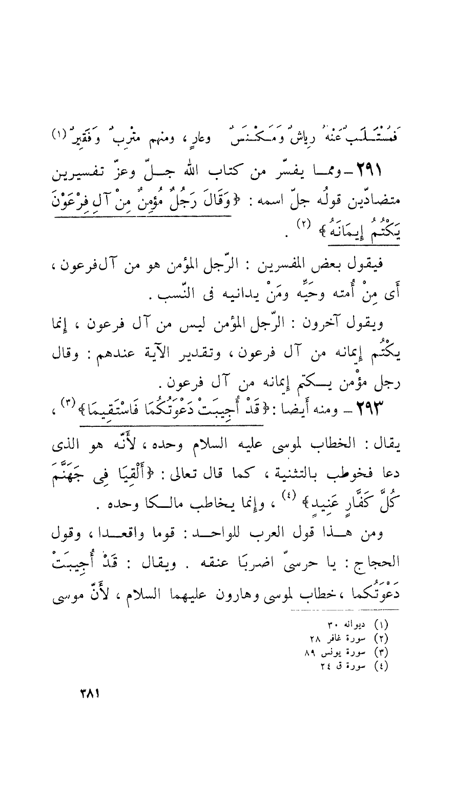 292 - وممَّا يفسَّر من كتاب الله عزّ وجلّ تفسيرين متضادّين قولُه جلَّ اسمه: وقالَ رَجُلٌ مُؤْمِنٌ مِنْ آلِ فِرْعَوْنَ يَكْتُمُ إِيمَانَهُ.