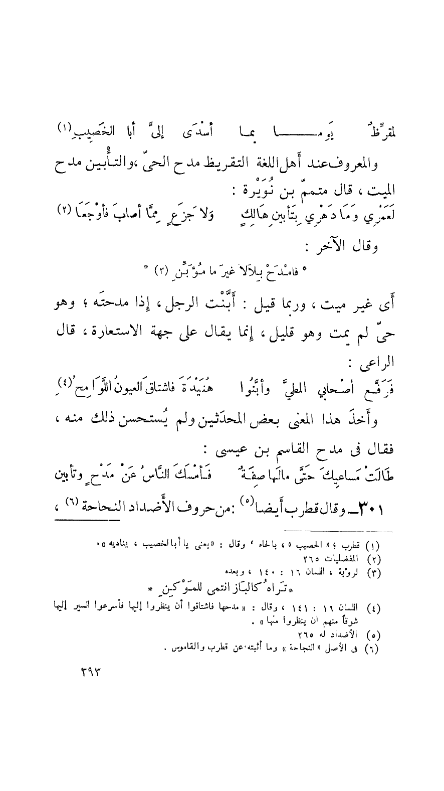 301 - وقال قُطْرب أَيضاً: من حروف الأَضداد النحاحة،