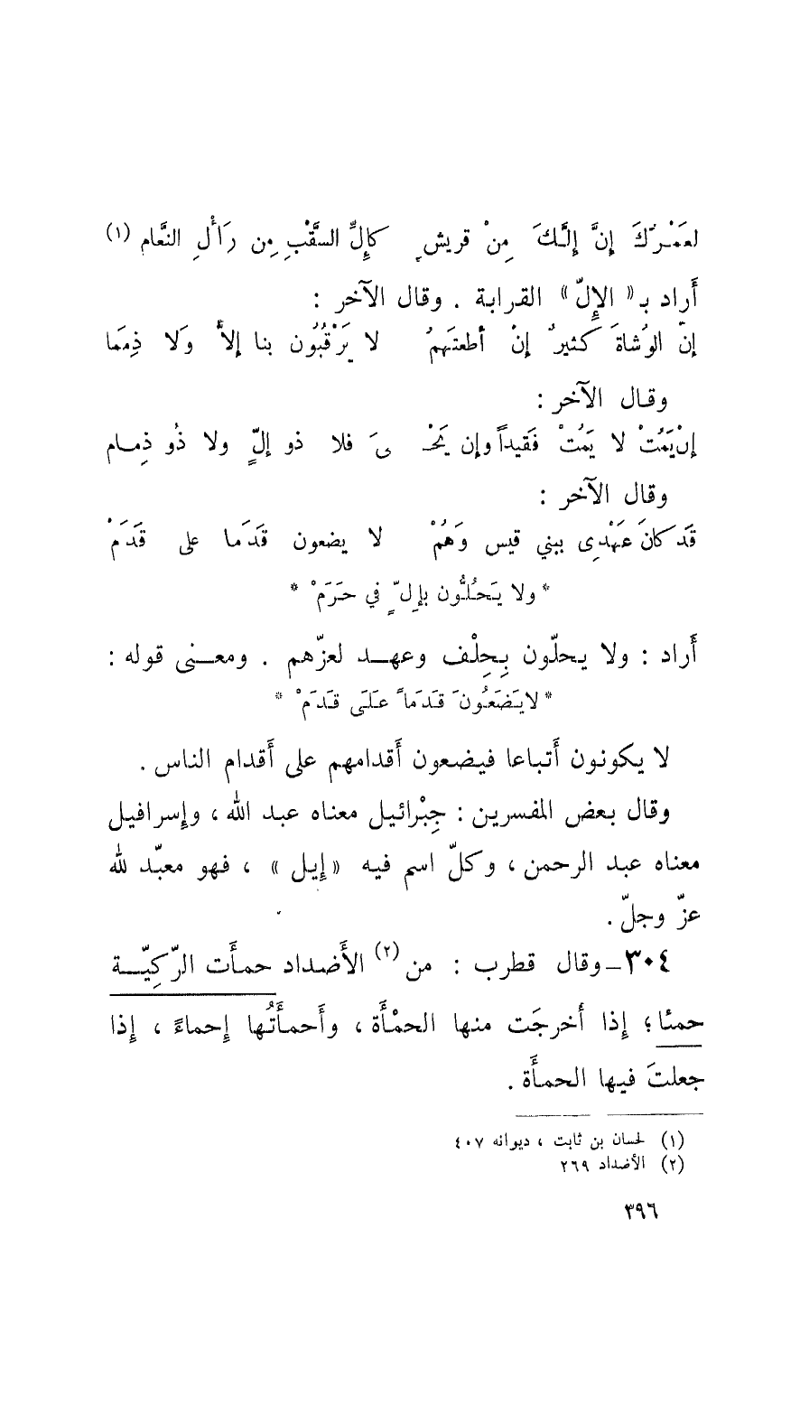 لَعَمْركَ إِنَّ إِلَّكَ مِنْ قريشٍ ... كإِلِّ السَّقْبِ مِن رأْلِ النَّعام