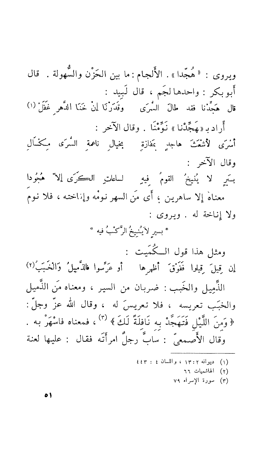 يسَيْرٍ لا يُنِيخُ القومُ فيهِ ... لساعاتِ الكَرَى إِلاَّ هُجُودَا