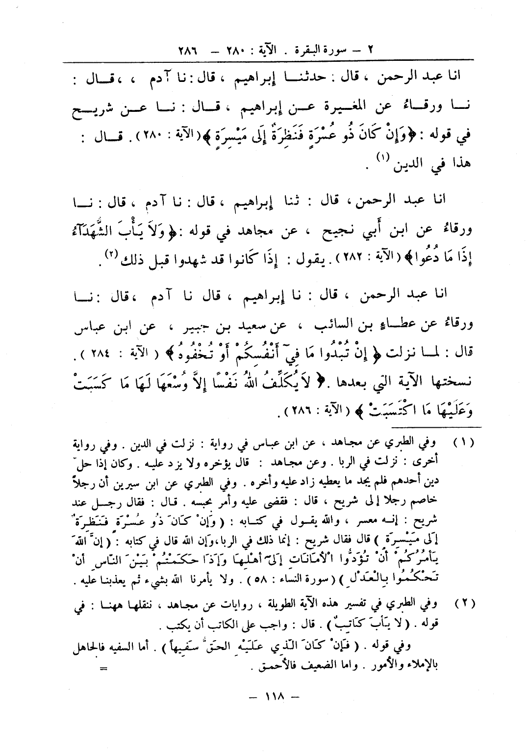 انا عبد الرحمن قال نا إبراهيم قال نا آدم قال نا ورقاء عن عطاء بن السائب عن سعيد بن جبير عن ابن عباس قال لما نزلت إن تبدوا ما في أنفسكم أو تخفوه نسختها الآية التي بعدها لا يكلف الله نفسا إلا وسعها لها ما كسبت وعليها ما اكتسبت