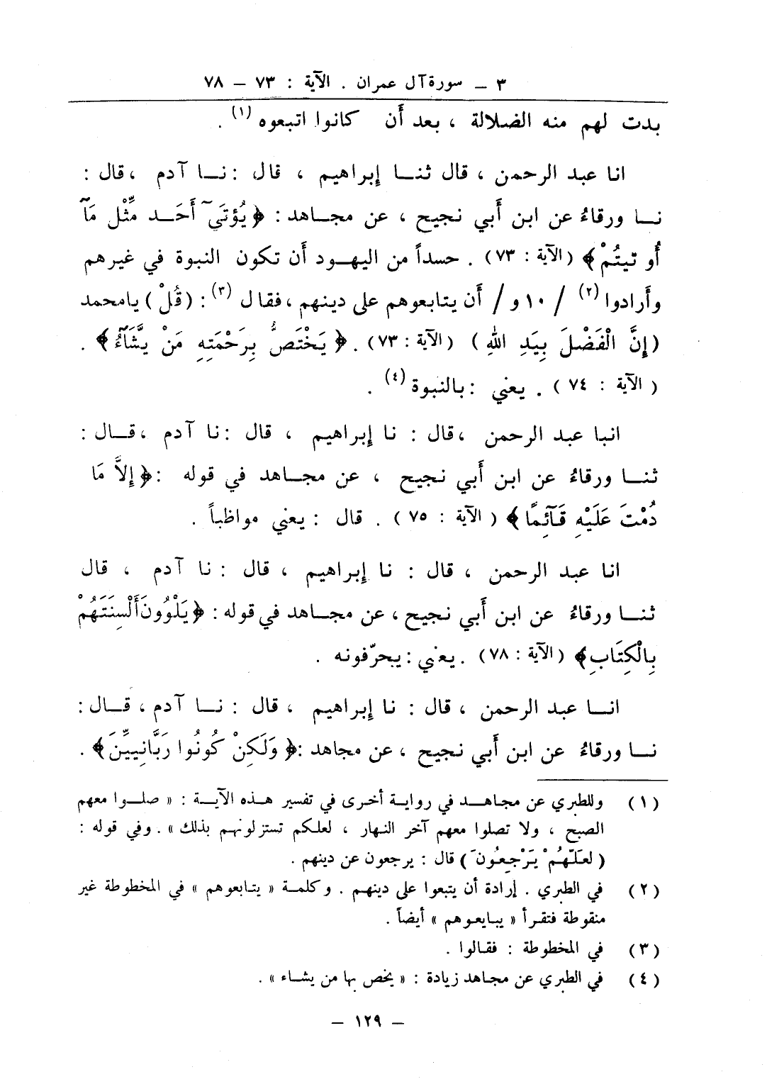 انا عبد الرحمن قال نا إبراهيم قال نا آدم قال ثنا ورقاء عن ابن أبي نجيح عن مجاهد في قوله يلوون ألسنتهم بالكتاب يعني يحرفونه