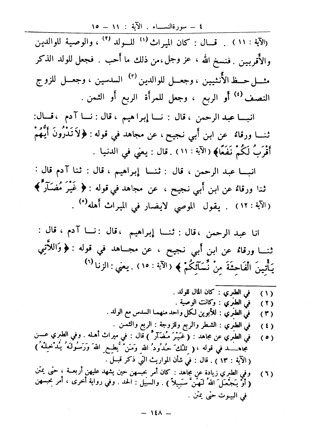 انا عبد الرحمن قال ثنا إبراهيم قال نا آدم قال ثنا ورقاء عن ابن أبي نجيح عن مجاهد في قوله واللاتي يأتين الفاحشة من نسآئكم يعني الزنا
