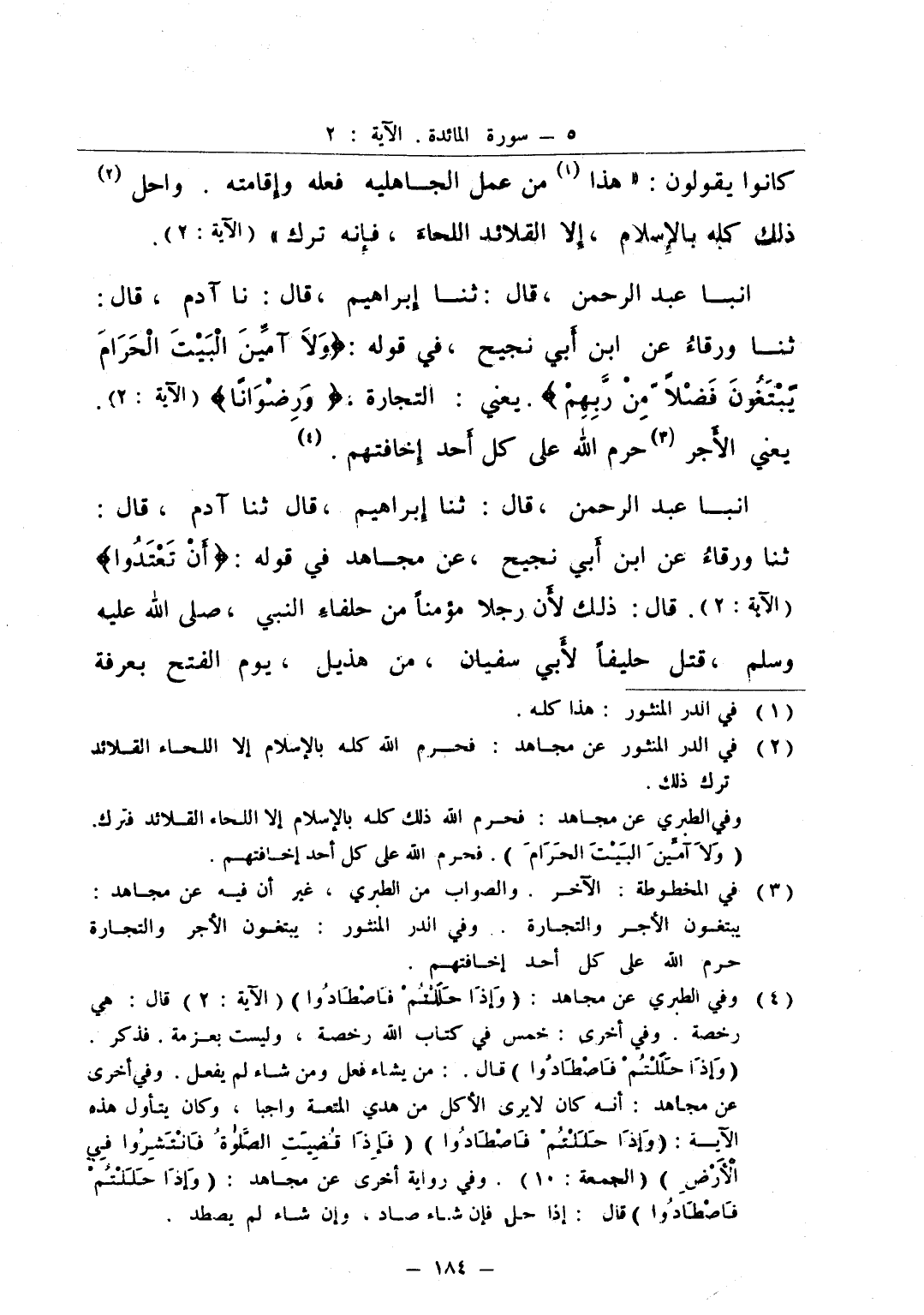 انبا عبد الرحمن قال ثنا إبراهيم قال نا آدم قال ثنا ورقاء عن ابن أبي نجيح في قوله ولا آمين البيت الحرام يبتغون فضلا من ربهم يعني التجارة ورضوانا يعني الأجر حرم الله على كل أحد إخافتهم