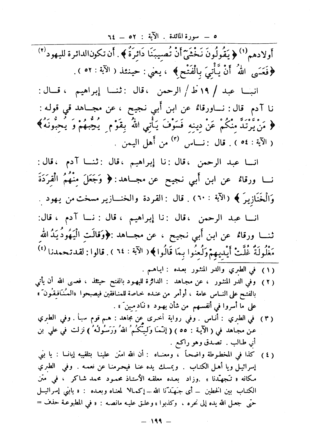 انبا عبد الرحمن قال ثنا إبراهيم قال نا آدم قال نا ورقاء عن ابن أبي نجيح عن مجاهد في قوله من يرتد منكم عن دينه فسوف يأتي الله بقوم يحبهم ويحبونه قال ناس من أهل اليمن