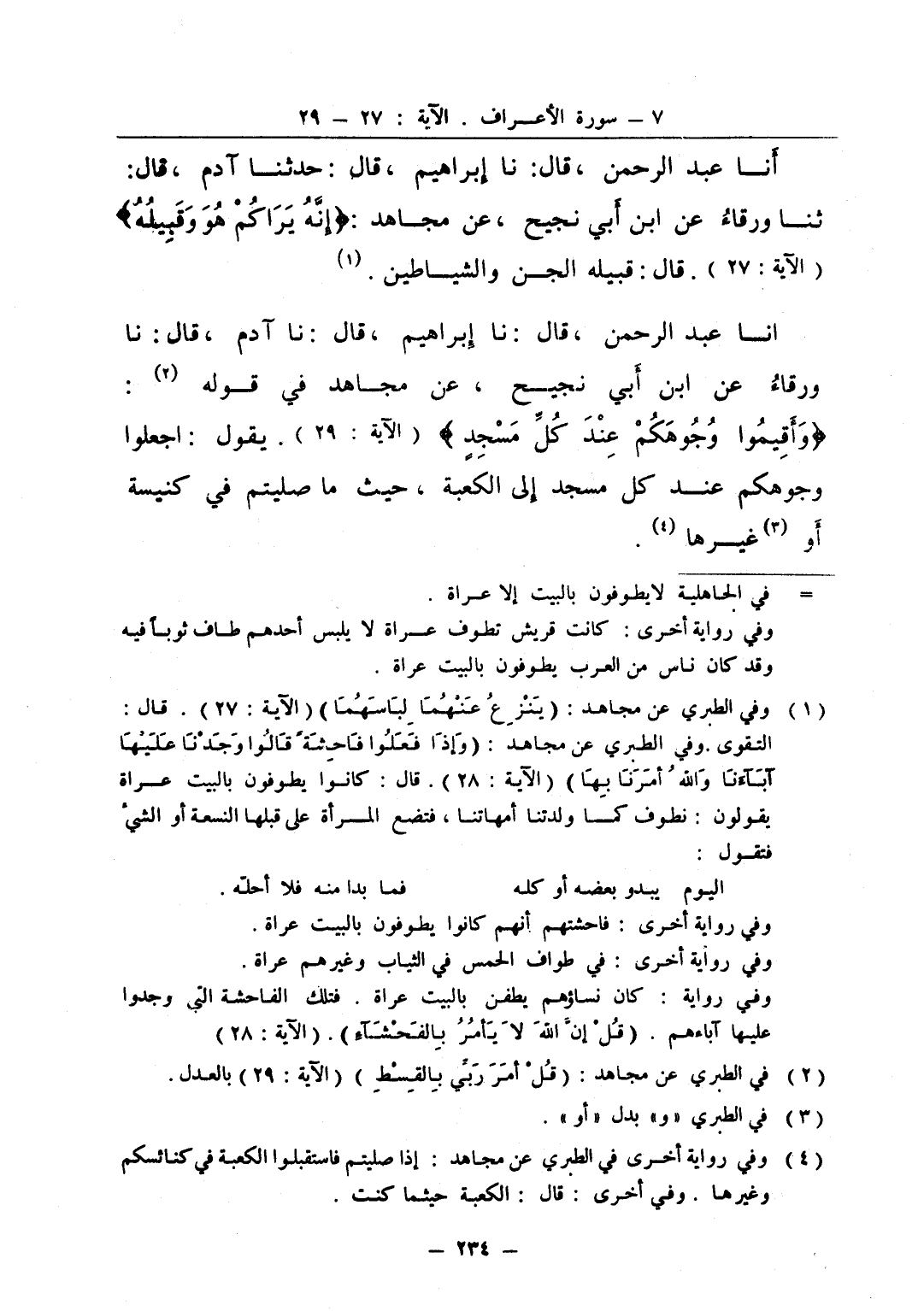 أنا عبد الرحمن قال نا إبراهيم قال حدثنا آدم قال ثنا ورقاء عن ابن أبي نجيح عن مجاهد إنه يراكم هو وقبيله قال قبيله الجن والشياطين
