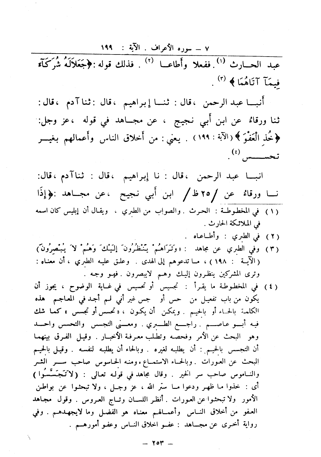 أنبا عبد الرحمن قال ثنا إبراهيم قال ثنا آدم قال ثنا ورقاء عن ابن أبي نجيح عن مجاهد في قوله عز و جل خذ العفو يعني من أخلاق الناس وأعمالهم بغير تحسس