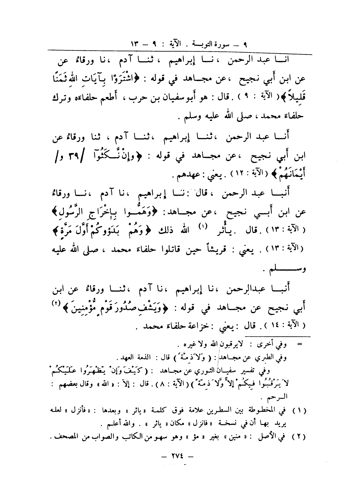 أنا عبد الرحمن ثنا إبراهيم ثنا آدم ثنا ورقاء عن ابن أبي نجيح عن مجاهد في قوله وإن نكثوآ أيمانهم يعني عهدهم