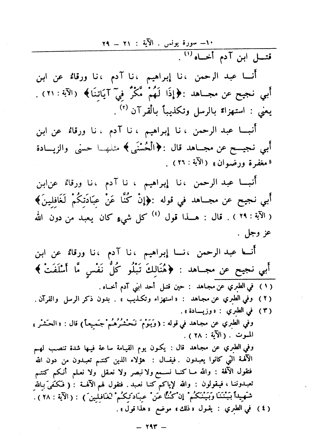 انبا عبد الرحمن نا إبراهيم نا آدم نا ورقاء عن ابن ابي نجيح عن مجاهد في قوله إن كنا عن عبادتكم لغافلين قال هذا قول كل شيء كان يعبد من دون الله عز و جل