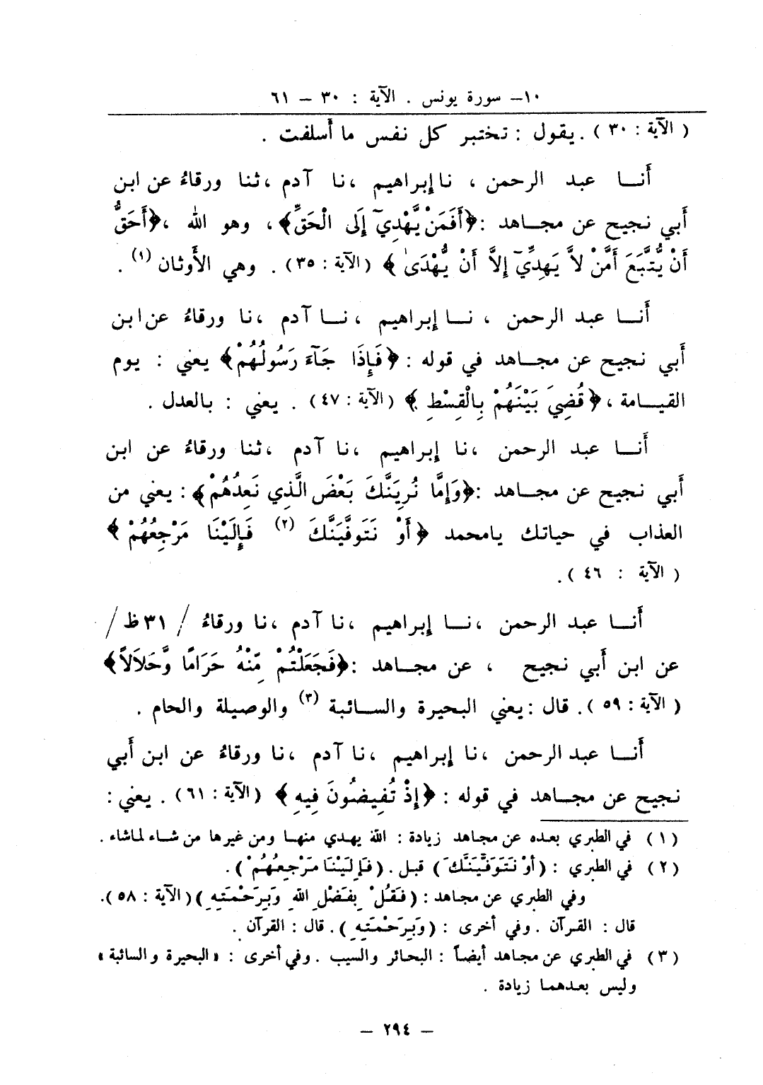 أنا عبد الرحمن نا إبراهيم نا آدم نا ورقاء عن ابن ابي نجيح عن مجاهد في قوله فإذا جآء رسولهم يعني يوم القيامة قضي بينهم بالقسط يعني بالعدل