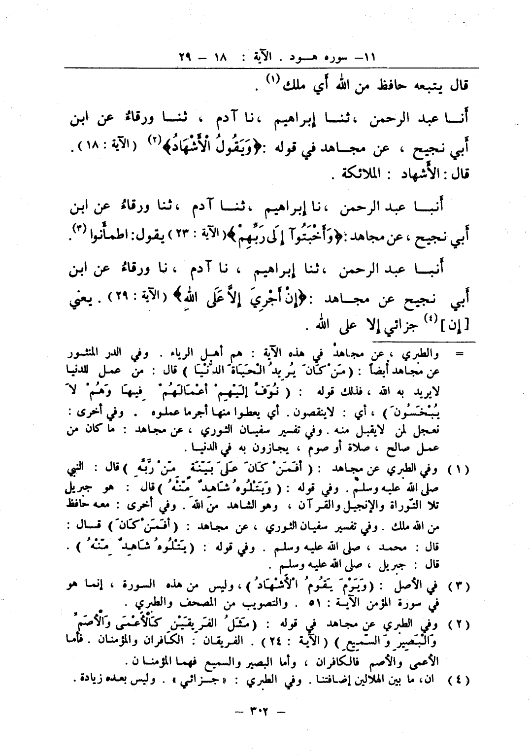 انا عبد الرحمن ثنا إبراهيم نا آدم ثنا ورقاء عن ابن أبي نجيح عن مجاهد في قوله ويقول الاشهاد قال الأشهاد الملائكة
