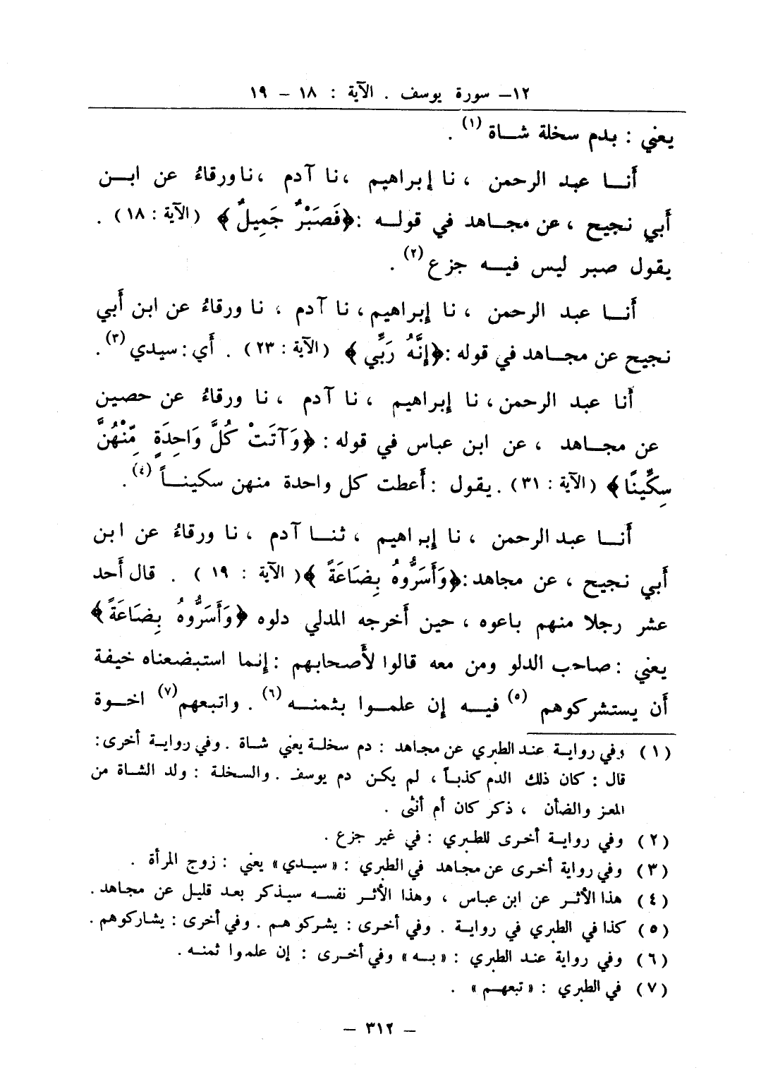 انا عبد الرحمن نا إبراهيم نا آدم نا ورقاء عن ابن أبي نجيح عن مجاهد في قوله إنه ربي أي سيدي