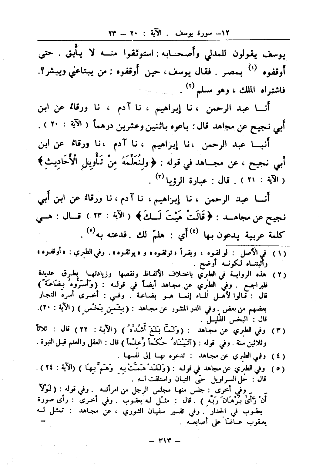انا عبد الرحمن نا إبراهيم نا آدم نا ورقاء عن ابن أبي نجيح عن مجاهد قال باعوه باثنين وعشرين درهما