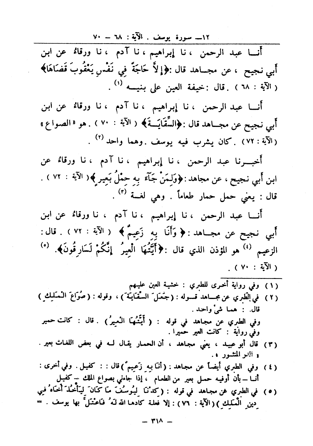 انا عبد الرحمن نا إبراهيم نا آدم نا ورقاء عن ابن أبي نجيح عن مجاهد قال السقاية هو الصواع كان يشرب فيه يوسف وهما واحد