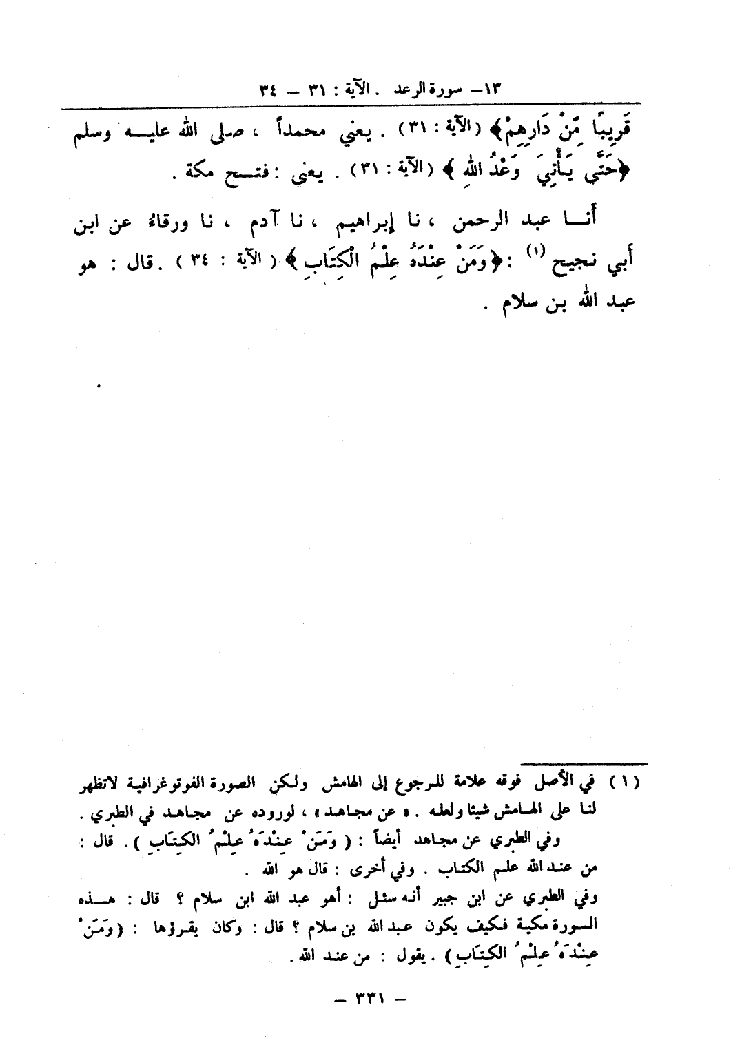 انا عبد الرحمن نا إبراهيم نا آدم نا ورقاء عن ابن ابي نجيح ومن عنده علم الكتاب قال هو عبد الله بن سلام