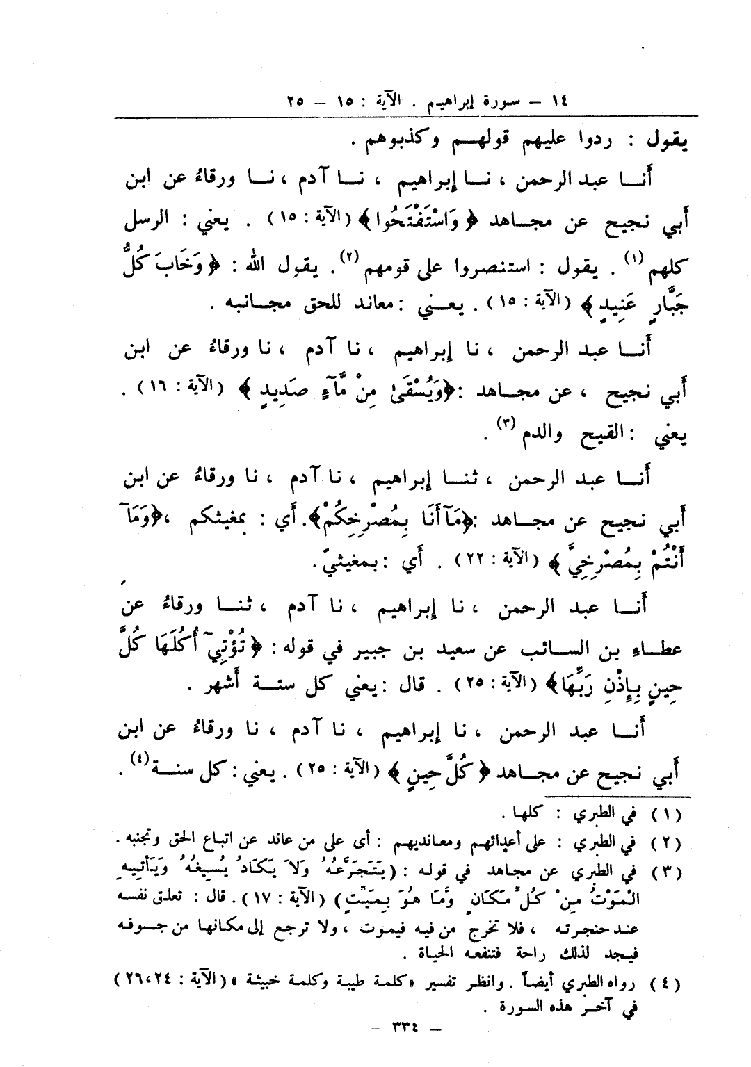 انا عبد الرحمن نا إبراهيم نا آدم نا ورقاء عن ابن أبي نجيح عن مجاهد كل حين يعني كل سنة