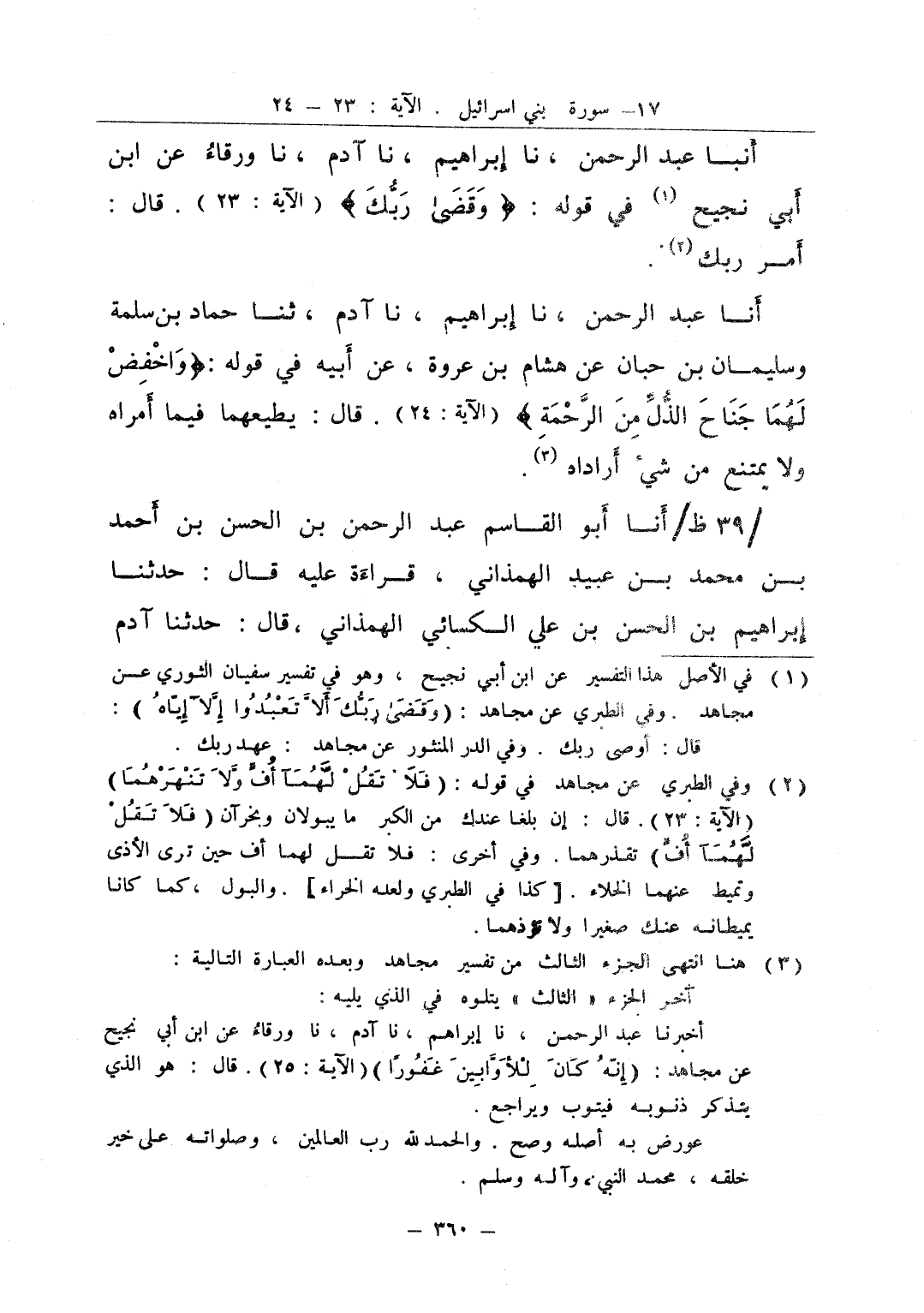 انبا عبد الرحمن نا إبراهيم نا آدم نا ورقاء عن ابن أبي نجيح في قوله وقضى ربك قال أمر ربك