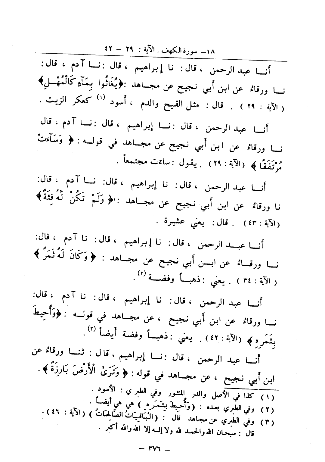 أنا عبد الرحمن قال نا إبراهيم قال نا آدم قال نا ورقاء عن ابن أبي نجيح عن مجاهد في قوله وأحيط بثمره يعني ذهبا وفضة أيضا