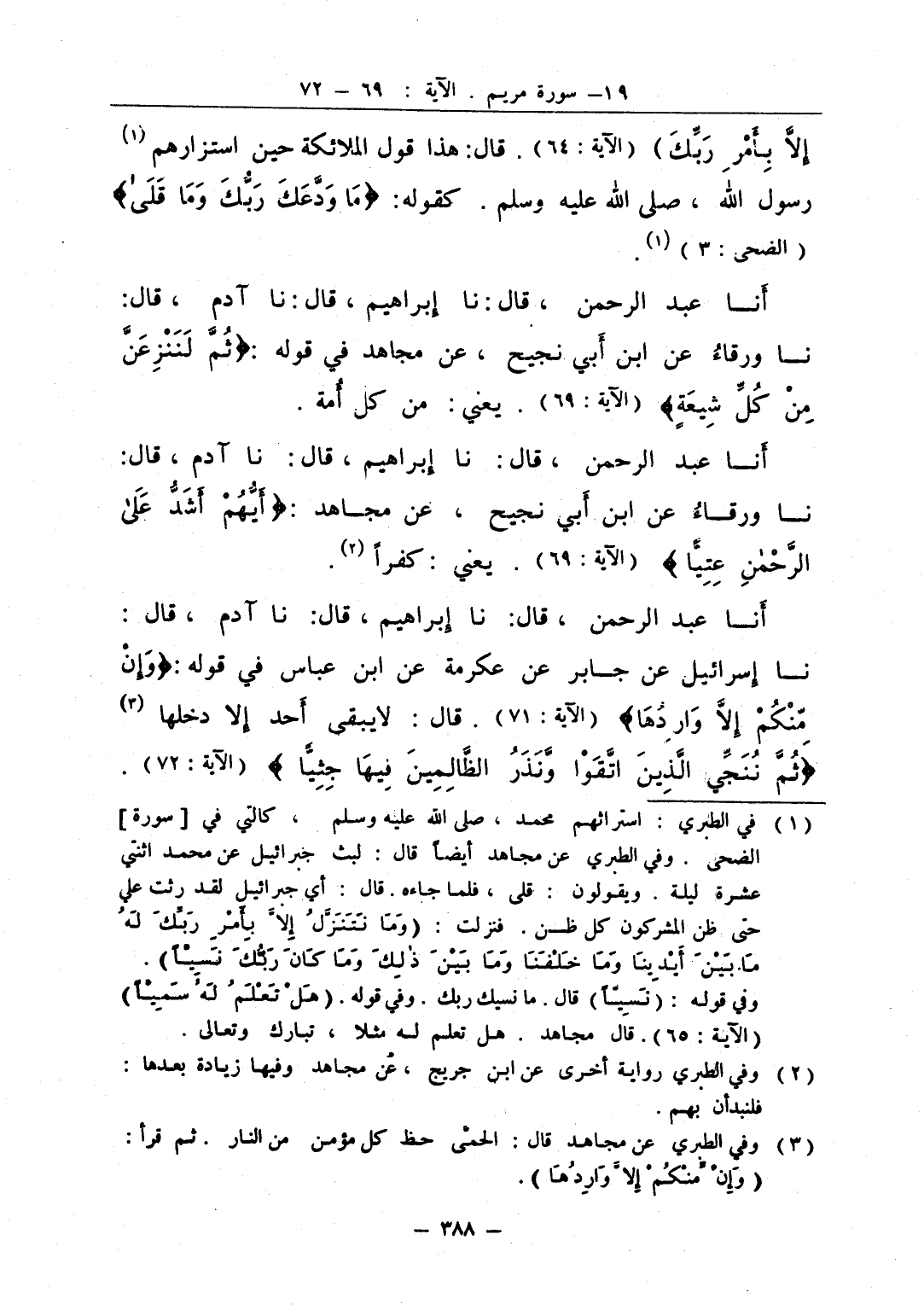 أنا عبد الرحمن قال نا إبراهيم قال نا آدم قال نا ورقاء عن ابن أبي نجيح عن مجاهد أيهم أشد على الرحمن عتيا يعني كفرا