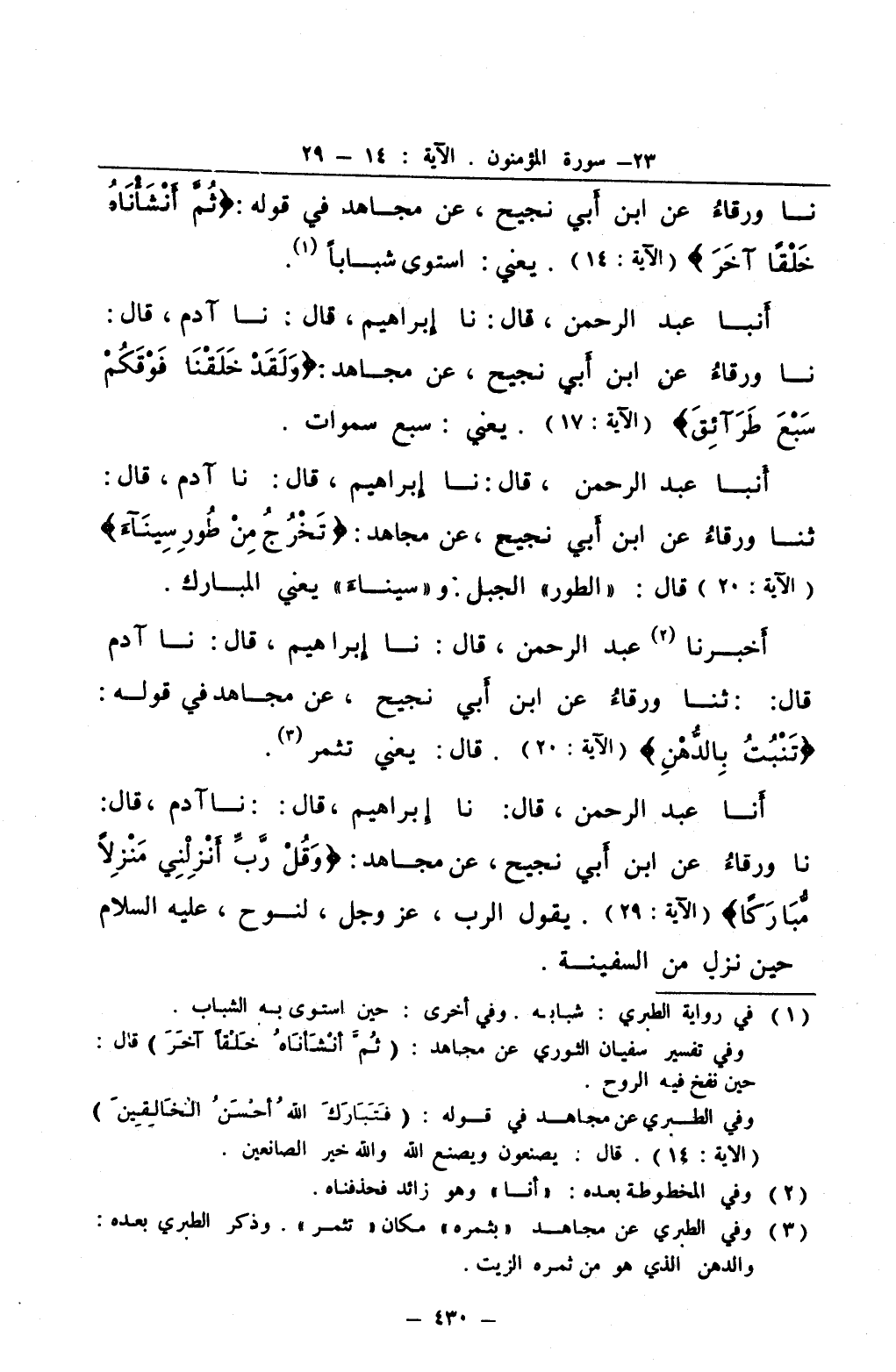 أخبرنا 2 عبد الرحمن قال نا إبراهيم قال نا آدم قال ثنا ورقاء عن ابن أبي نجيح عن مجاهد في قوله تنبت بالدهن قال يعني تثمر 3