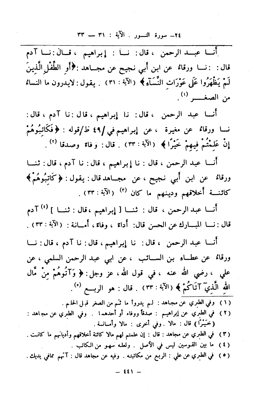 أنا عبد الرحمن قال نا إبراهيم قال نا آدم قال نا ورقاء عن مغيرة عن إبراهيم في قوله فكاتبوهم إن علمتم فيهم خيرا قال وفاء وصدقا 2