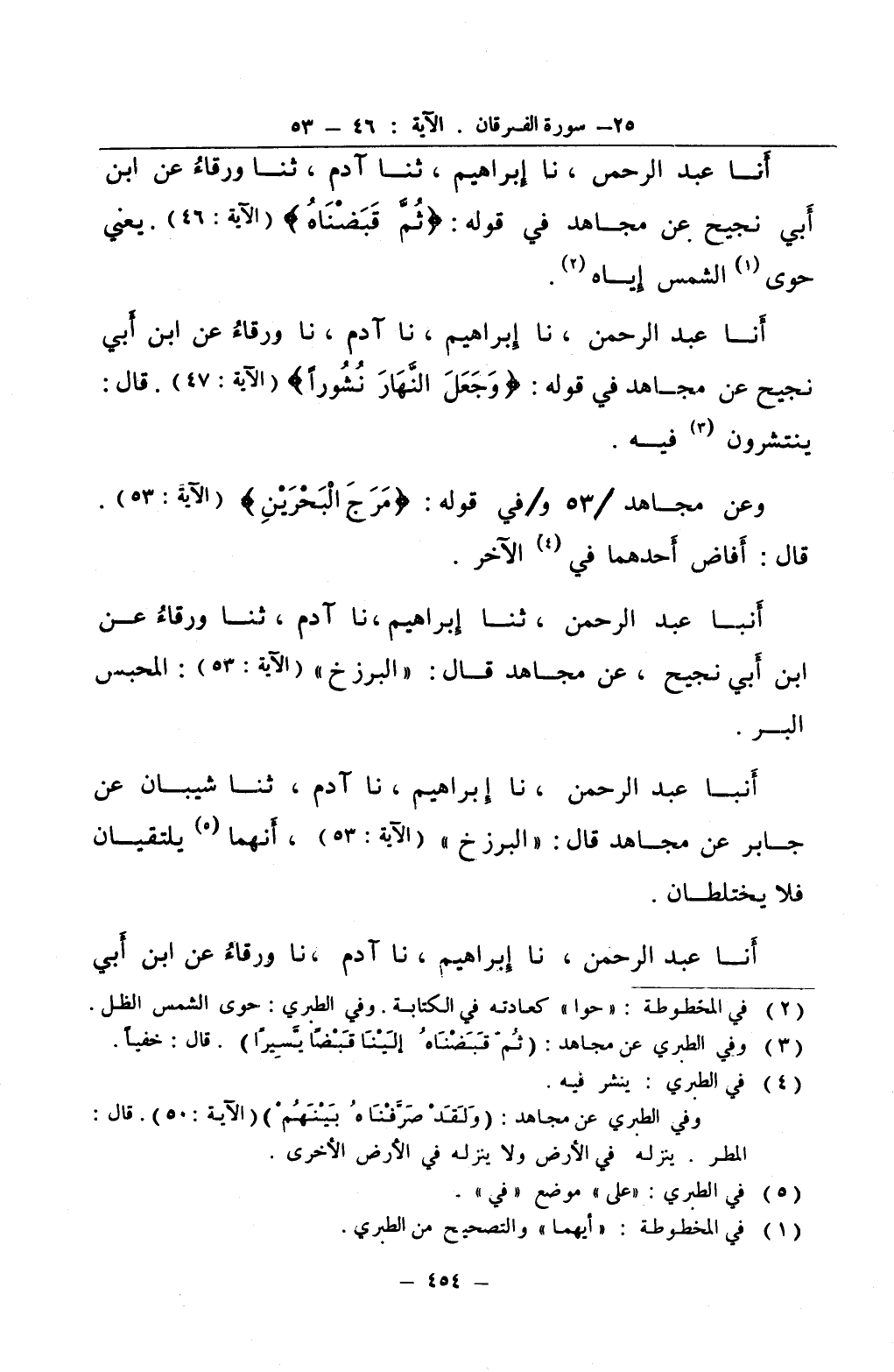أنا عبد الرحمن نا إبراهيم نا آدم نا ورقاء عن ابن أبي نجيح عن مجاهد في قوله وجعل النهار نشورا قال ينتشرون فيه 3