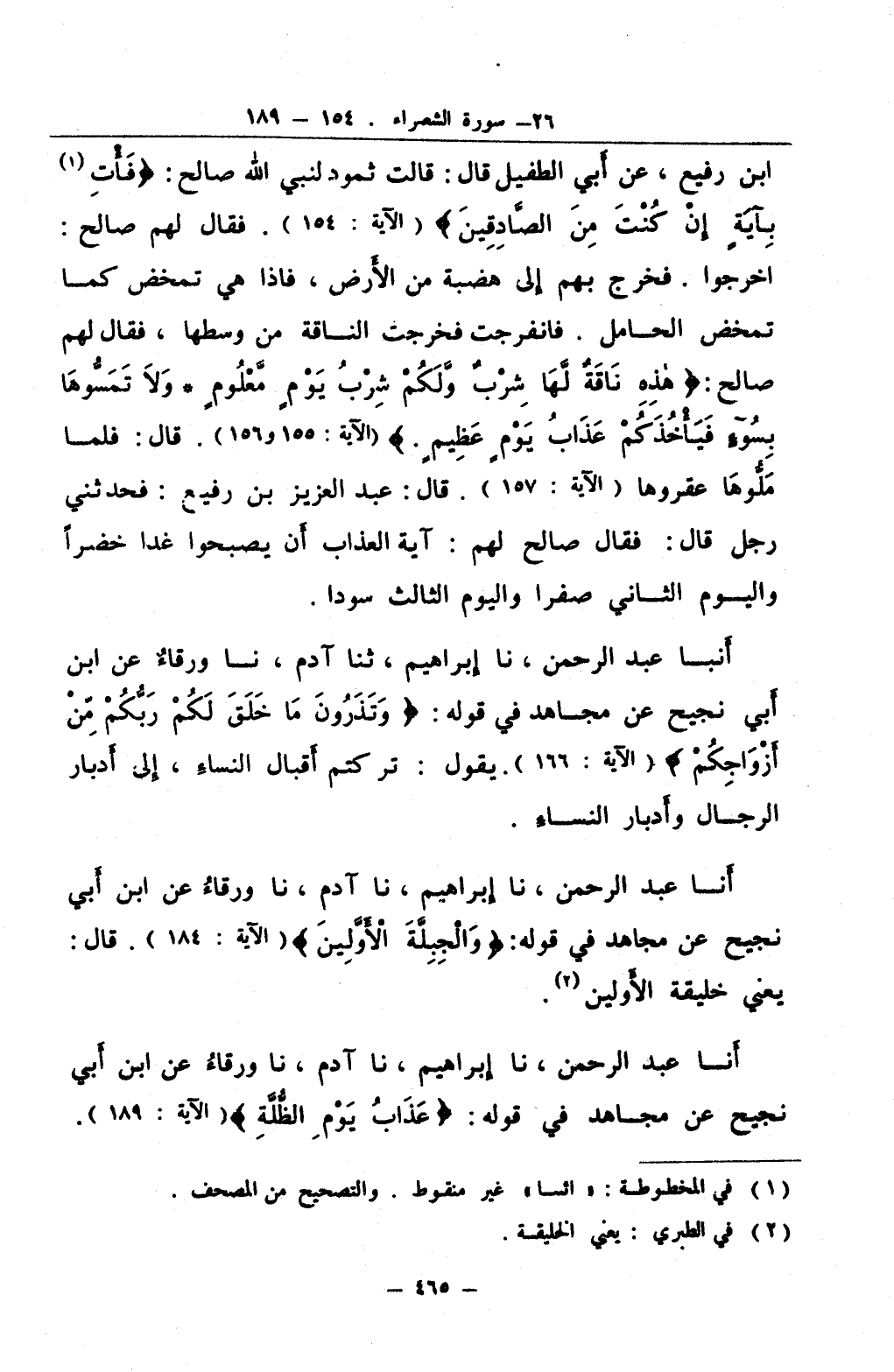 أنا عبد الرحمن نا إبراهيم نا آدم نا ورقاء عن ابن أبي نجيح عن مجاهد في قوله والجبلة الأولين قال يعني خليقة الأولين 2