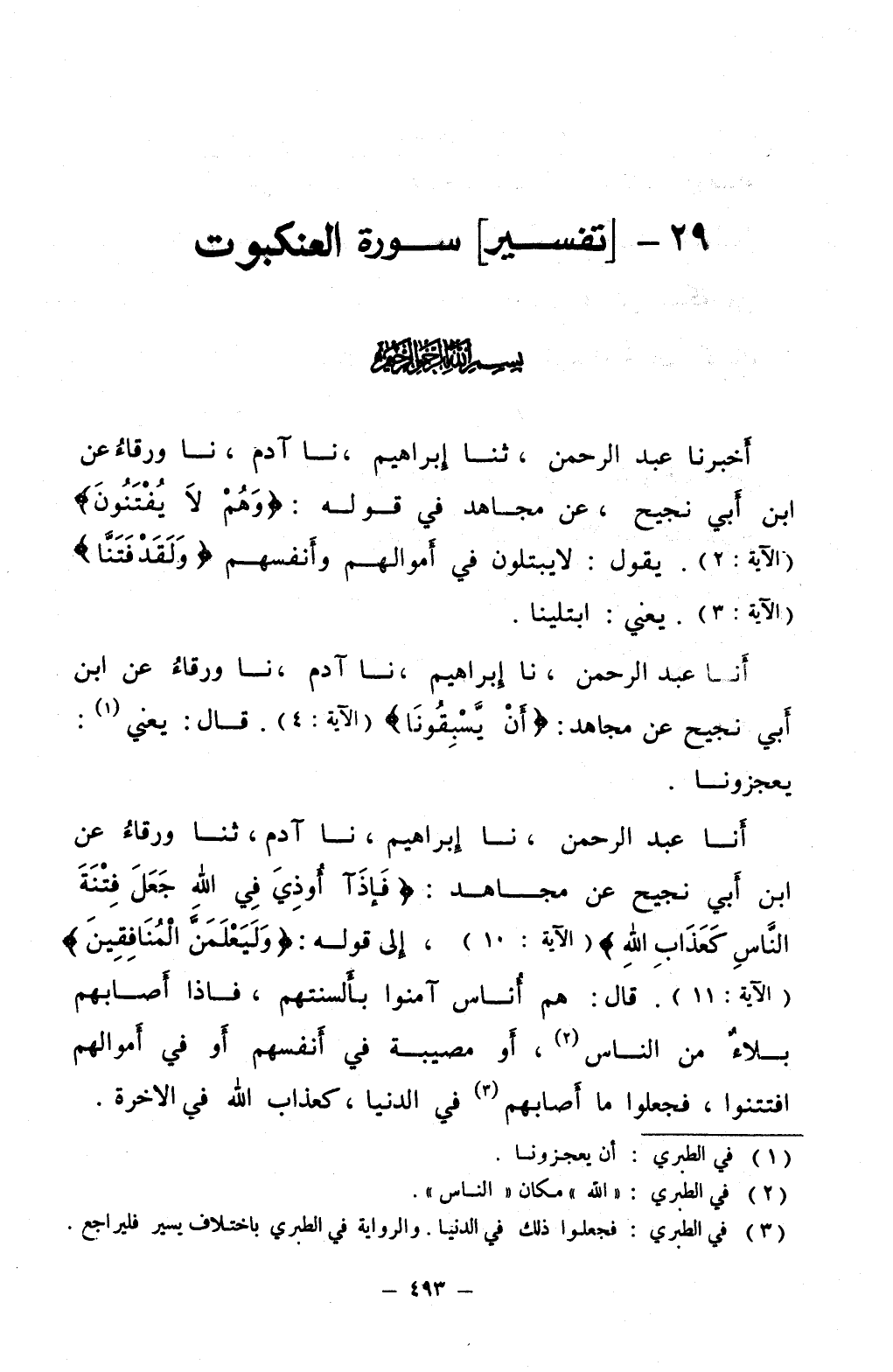 أخبرنا عبد الرحمن ثنا إبراهيم نا آدم نا ورقاء عن ابن أبي نجيح عن مجاهد في قوله وهم لا يفتنون يقول لا يبتلون في أموالهم وأنفسهم ولقد فتنا يعني ابتلينا