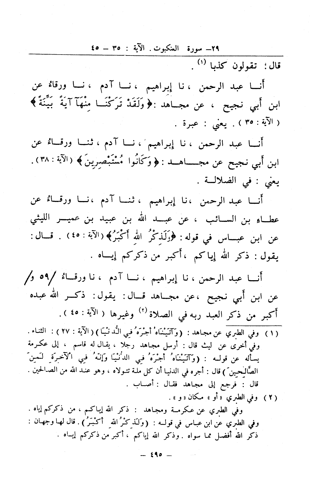 انا عبد الرحمن نا إبراهيم نا آدم ثنا ورقاء عن ابن ابي نجيح عن مجاهد وكانوا مستبصرين يعني في الضلالة