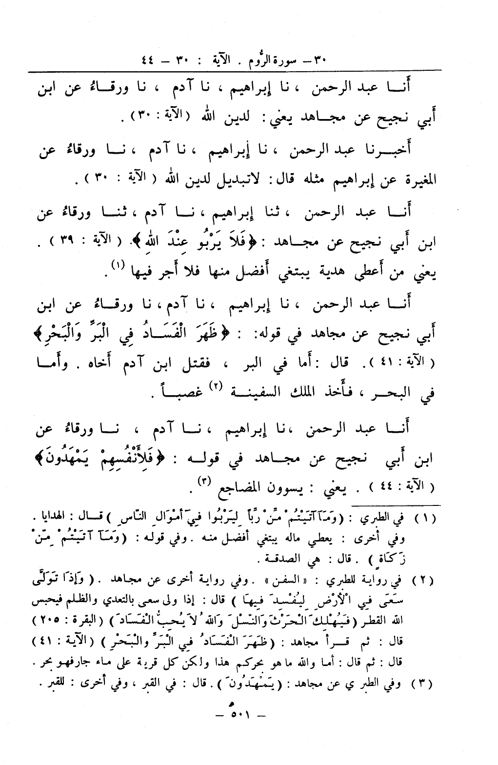أنا عبد الرحمن نا إبراهيم نا آدم نا ورقاء عن ابن أبي نجيح عن مجاهد يعني لدين الله