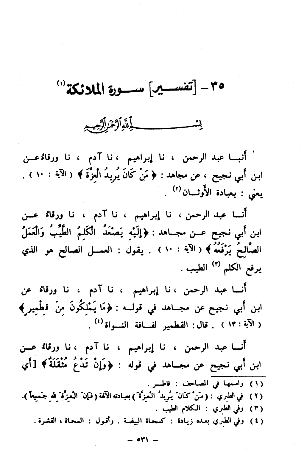 أنبا عبد الرحمن نا إبراهيم نا آدم نا ورقاء عن ابن أبي نجيح عن مجاهد من كان يريد العزة يعني بعبادة الأوثان 2