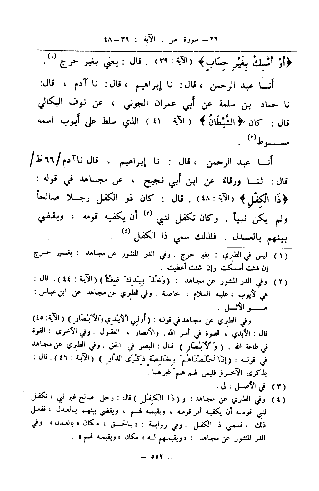 أنا عبد الرحمن قال نا إبراهيم قال نا آدم قال نا حماد بن سلمة عن أبي عمران الجوني عن نوف البكالي قال كان الشيطان الذي سلط على أيوب اسمه مسوط