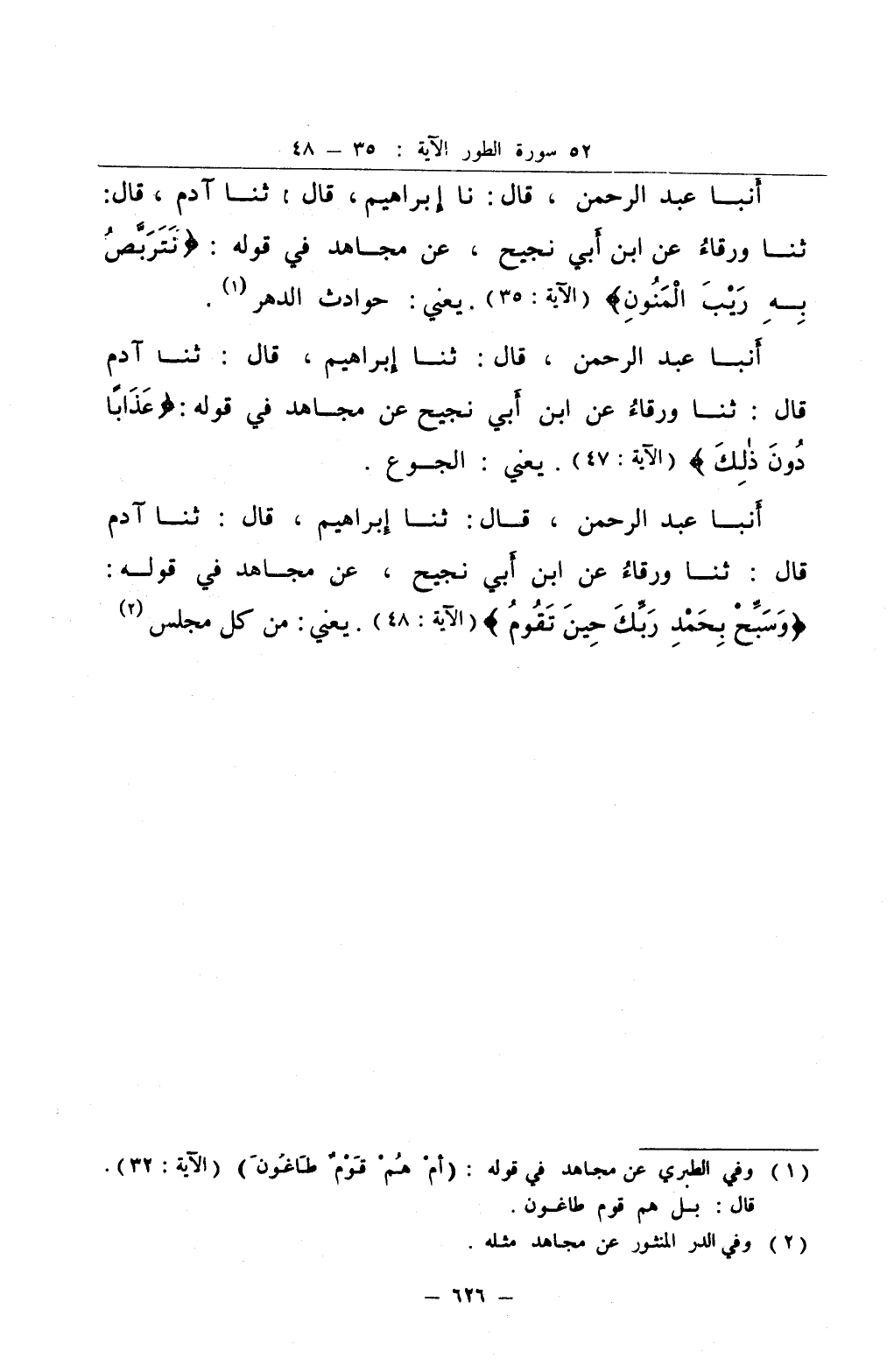 أنبا عبد الرحمن قال ثنا إبراهيم قال ثنا آدم قال ثنا ورقاء عن ابن أبي نجيح عن مجاهد في قوله وسبح بحمد ربك حين تقوم يعني من كل مجلس