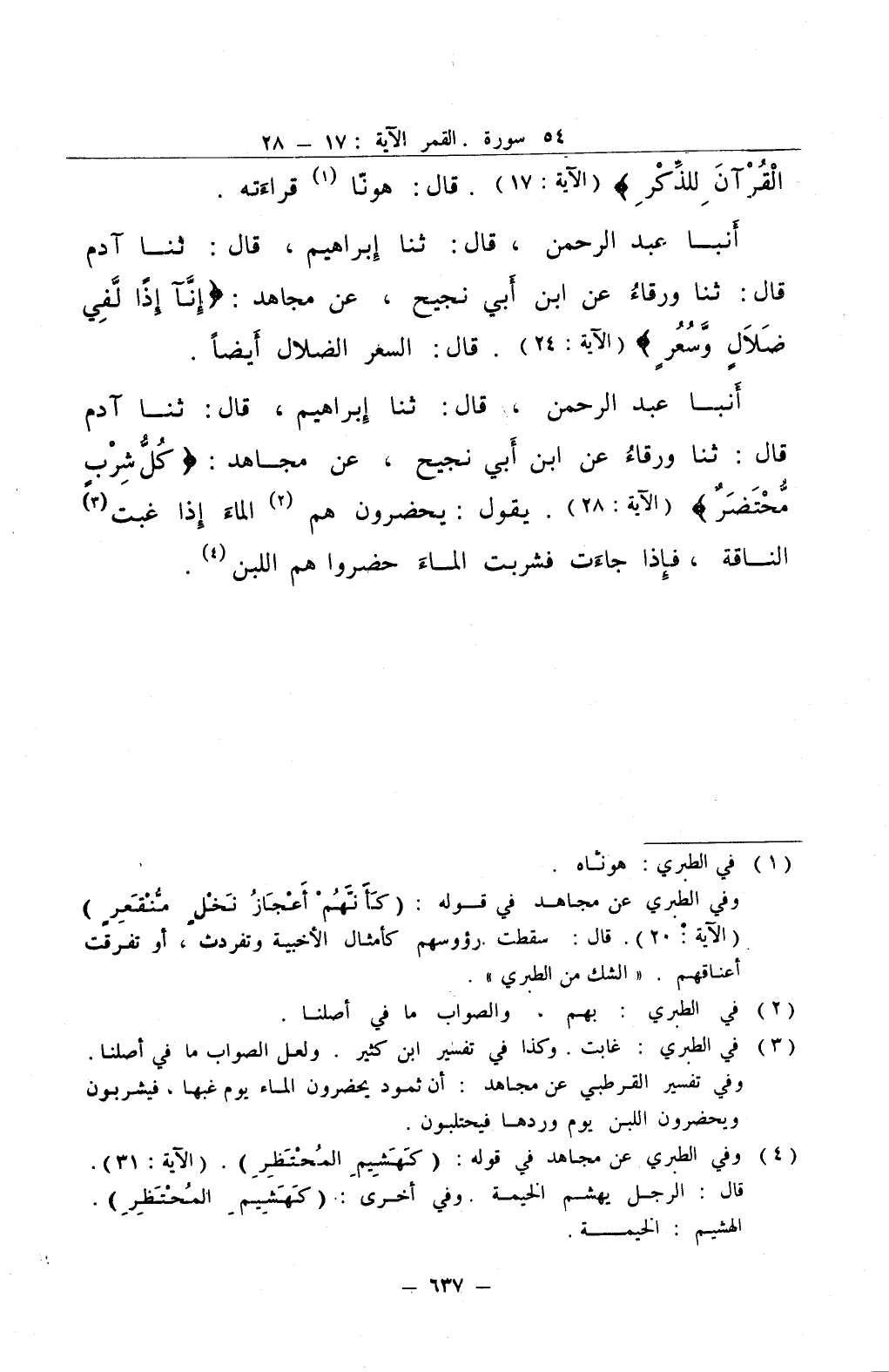 أنبا عبد الرحمن قال ثنا إبراهيم قال ثنا آدم قال ثنا ورقاء عن ابن أبي نجيح عن مجاهد إنآ إذا لفي ضلال وسعر قال السعر الضلال أيضا