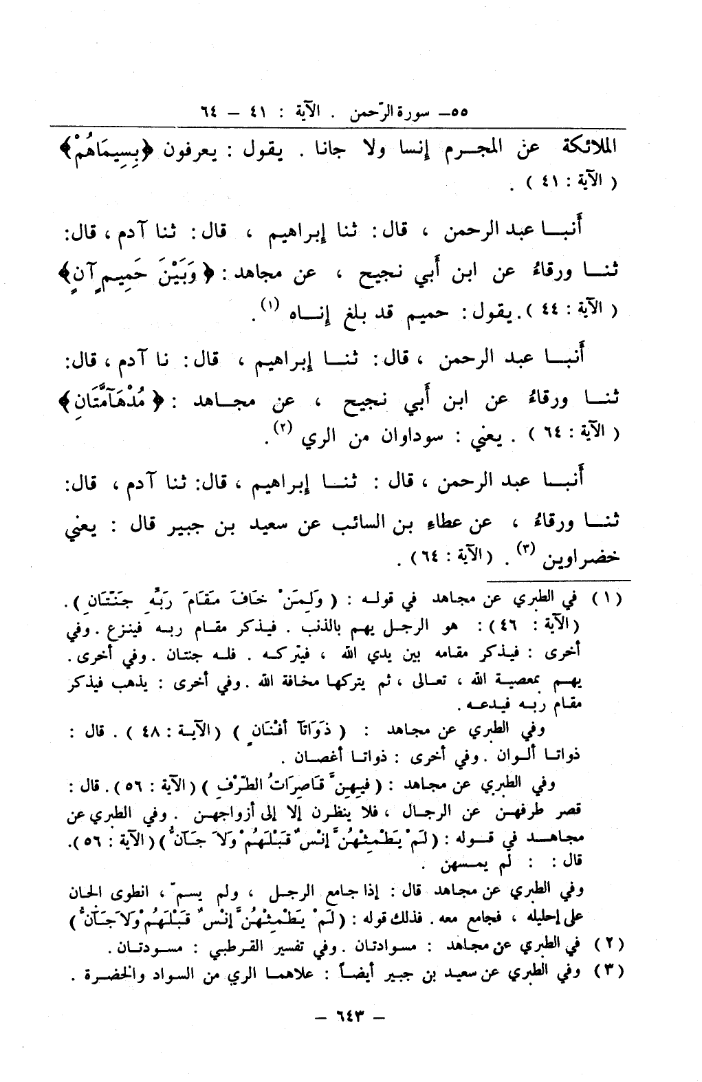 أنبا عبد الرحمن قال ثنا إبراهيم قال نا آدم قال ثنا ورقاء عن ابن ابي نجيح عن مجاهد مدهآمتان يعني سوداوان من الري