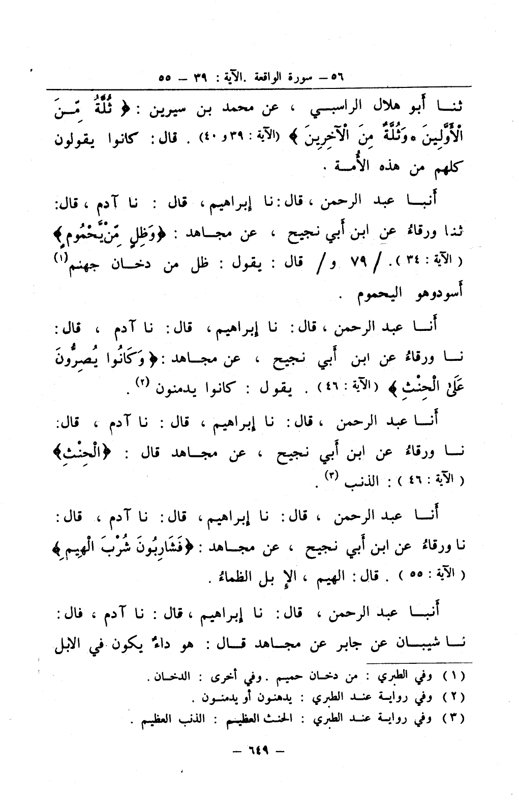 أنا عبد الرحمن قال نا إبراهيم قال نا آدم قال نا ورقاء عن ابن أبي نجيح عن مجاهد وكانوا يصرون على الحنث يقول كانوا يدمنون